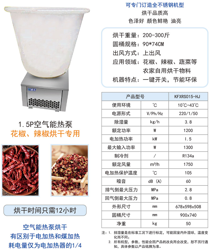 1.5P空气能花椒烘干机